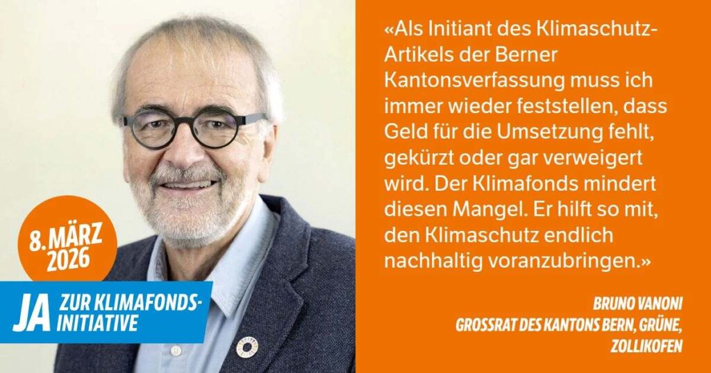 Wir sind die Ortspartei der GRÜNEN in Zollikofen – und zugleich offen für Personen, die sich als Parteilose auf Gemeindeebene für unsere grünen Anliegen engagieren wollen. Wir setzen uns ein für ein gutes Klima für Mensch und Natur – erfolgreich gegen den Ausbau der nahen Autobahn, für Fernwärme & erneuerbare Energie, mit Stellungnahmen zu Landi-Laden & Bärenareal – und aktuell: für genügend & guten Schulraum (z.B. Kindergarten-Neubau Steinibach) und für Begegnungszonen auf Quartierstrassen.