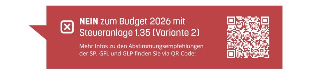 • NEIN zum unnötigen Aufhäufen von Schuldenbergen, also NEIN zum Budget 2026 mit Steuersenkung (Steueranlage 1.35 / Variante 2)