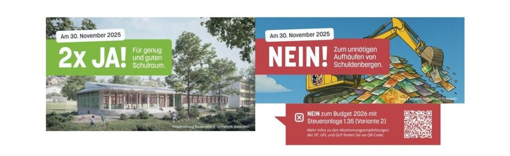 Gemeindeabstimmung vom 30. November 2025: Gemeinsamer Aufruf von SP, GFL und GLP – 2x JA, 1x NEIN!