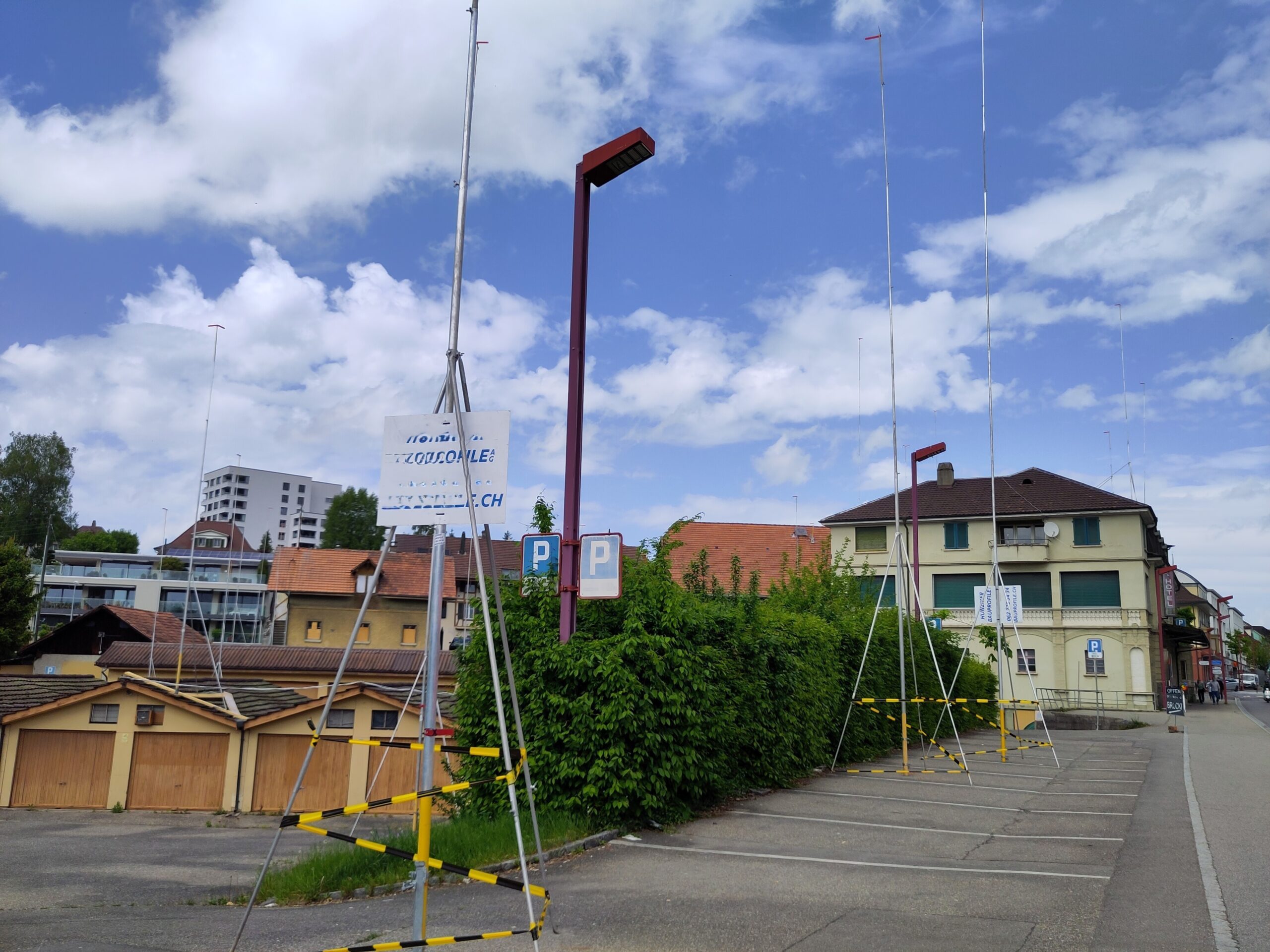 Hochragende Bauprofile haben diesen Sommer auf das grosse Volumen der geplanten Neubauten auf dem Bärenareal aufmerksam gemacht. Zu reden gegeben hat auch, dass die markante Linde neben dem ehemaligen Gasthof Bären bereits gefällt worden ist – das Gebäude selber, einst als erhaltenswert eingestuft, wird wohl bald abgebrochen werden.